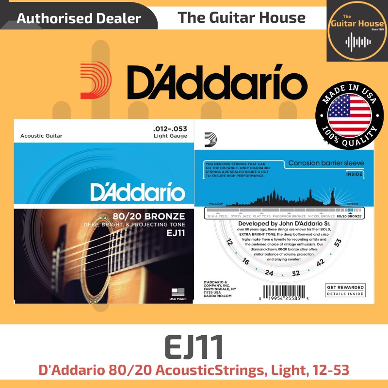 D Addario Acoustic Guitar Strings Ej11 - D Addario Ej11 80 20 Bronze Acoustic Strings Light 12 53 Made In Usa Ej11 Daddario Shopee Malaysia