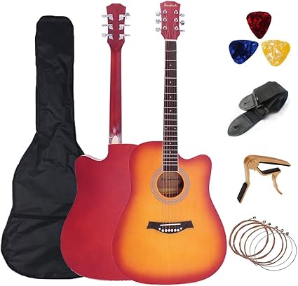Full Size Beginner Acoustic Guitar - Amazon Com 41 Inch Acoustic Guitar Set Full Size Cutaway Folk Guitar Bundles With Bag Pick Capo Strings Rosefinch Wooden Guitar For Beginners Adults Sunset Color Musical Instruments