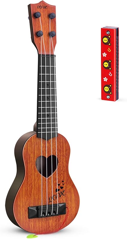 Star Kids Acoustic Toy Guitar - Amazon Com Hhobby Stars Kids Guitar Musical Toy Ukulele Classical Instrument Brown With Extra Harmonica 16 Holes Toys Games