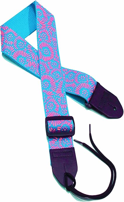 Guitar Straps Acoustic Girls - Amazon Com Girls Guitar Strap 2 Cotton Flower Guitar Strap With Turquoise Mums Flowers On A Purple Cotton Strap Musical Instruments