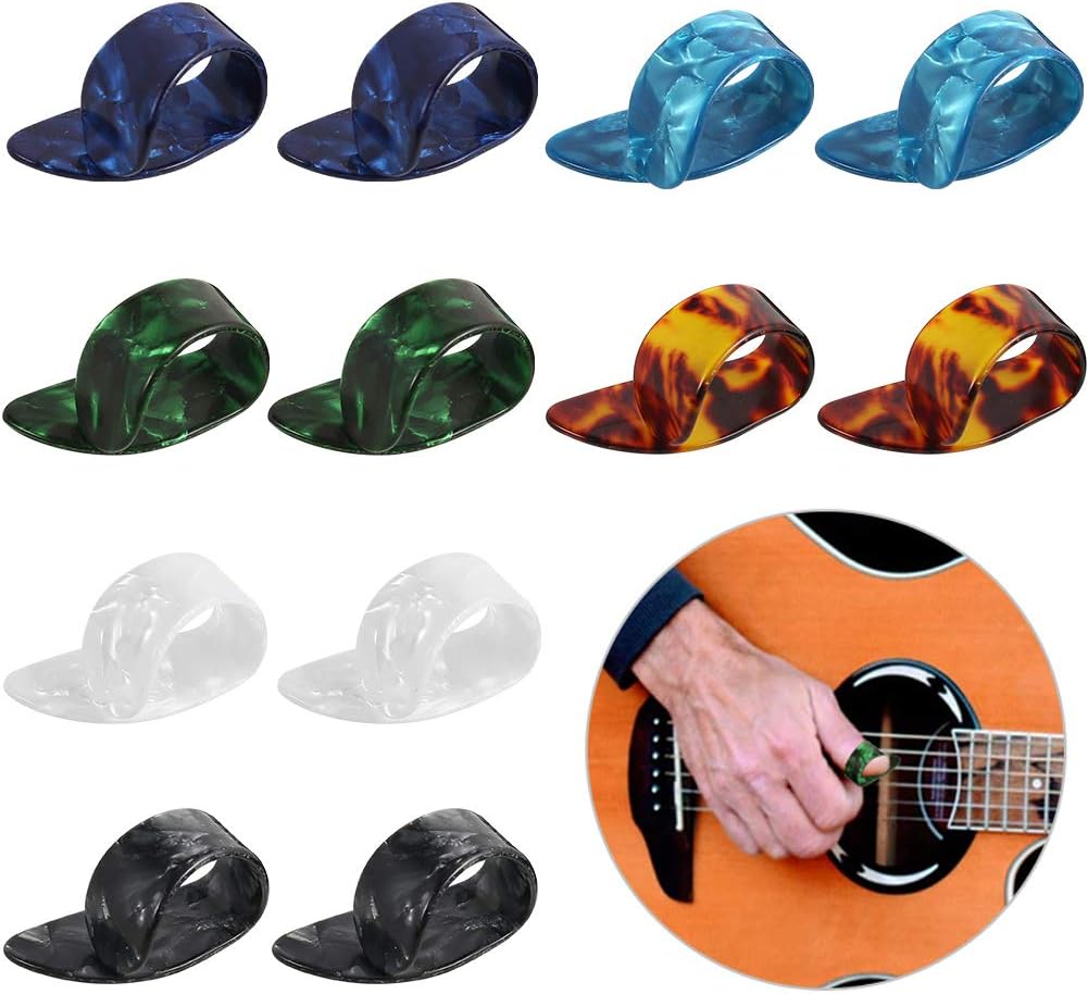 Thumb Pick Acoustic Guitar - Xinzistar 12 Pcs Thumb Pick Guitar Finger Picks Celluloid Guitar Plectrums Flat Thumbpicks Set For Acoustic Electric Guitar Amazon Co Uk Kitchen Home