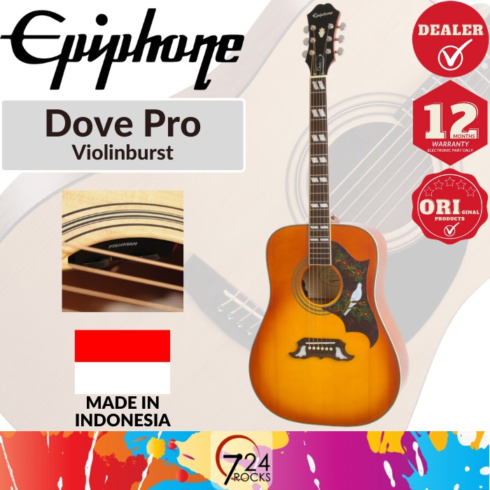 Epiphone Dove Acoustic Electric Guitar - Epiphone Dove Pro Solid Top Acoustic Electric Guitar With Built In Pickup Violin Burst Lazada