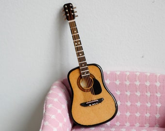 Dollhouse Acoustic Guitar - 1 12 Scale Dollhouse Miniature Music Instrument Wooden Guitar With Box Wish