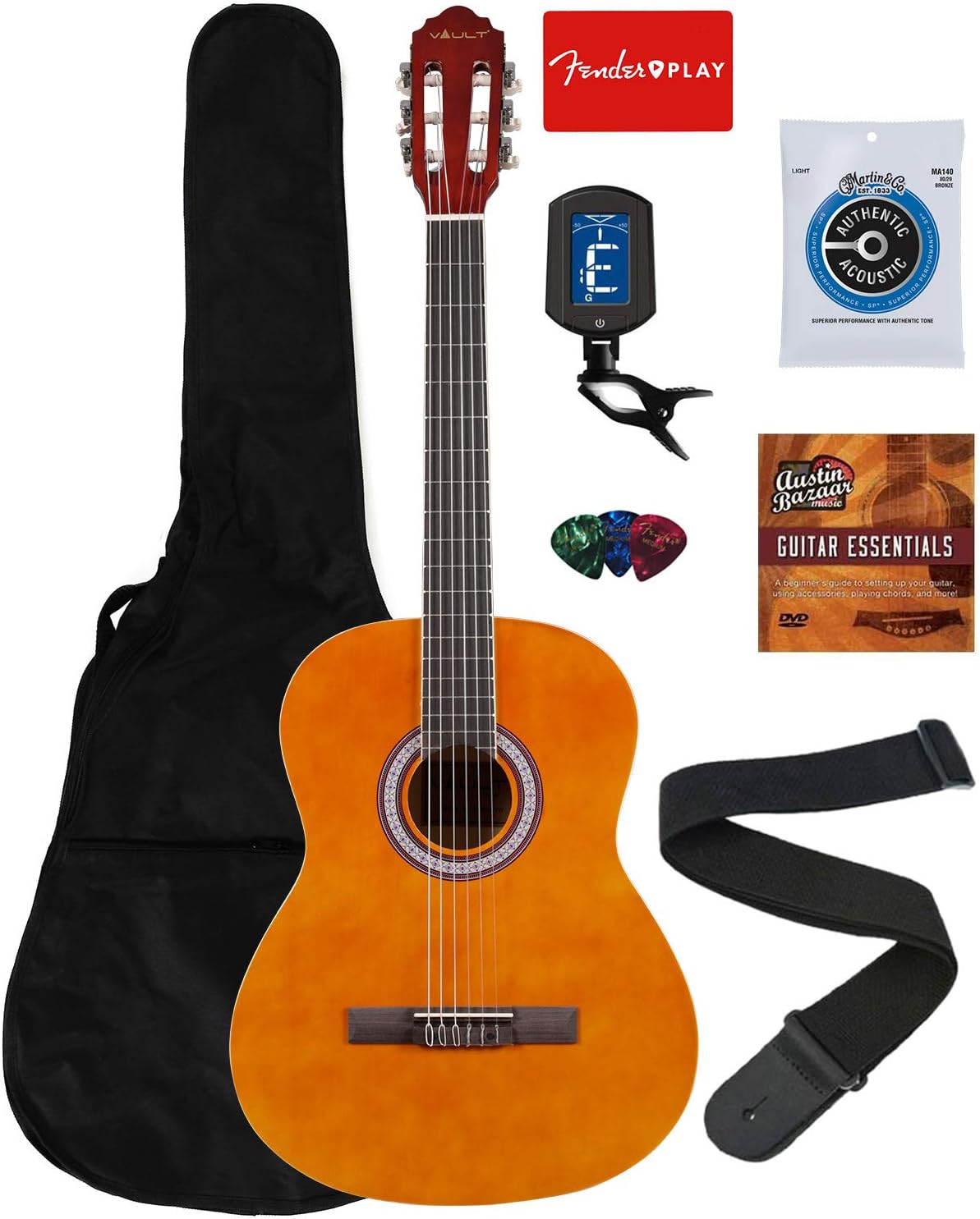 Acoustic Classical Guitar Fender - Vault Ec3900 Yw 39 Inch Acoustic Classical Guitar Natural Bundle With Gig Bag Tuner String Picks Strap Fender Play And Instructional Dvd Amazon Co Uk Musical Instruments